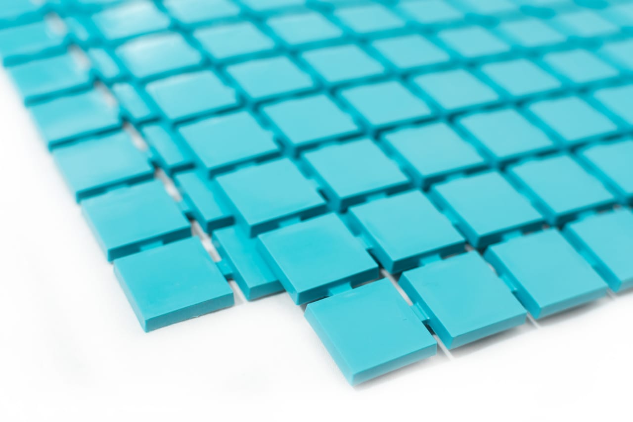 Tessel está elaborado con uno de los más resistentes polímeros, polipropileno. Además nuestro veneciano posee aditivos y diferentes compuestos para maximizar la calidad del mosaico, y hacerlo resistente a los distintos químicos utilizados en la limpieza de las albercas así como al desgaste por los rayos UV.