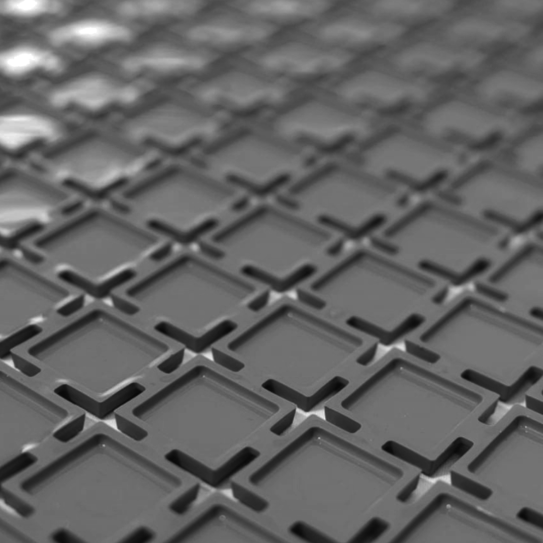 Mosaico veneciano Tessel® de polipropileno, resistente al sol, cloro y químicos. Su sistema de placas facilita la instalación, ofrece superficie antideslizante y acabado uniforme en múltiples colores. Ideal para revestir albercas con durabilidad, seguridad y bajo mantenimiento.